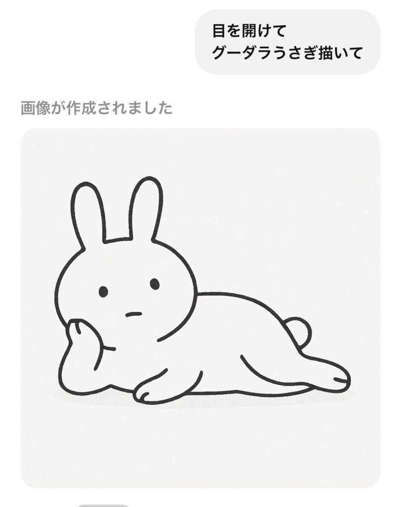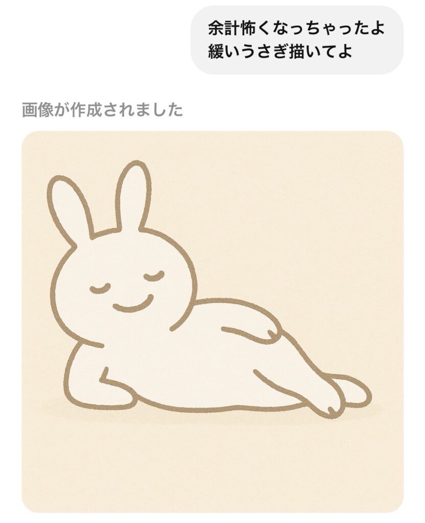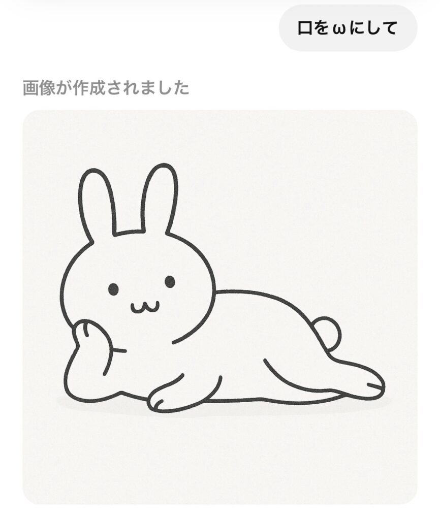 しかも、筆者が描いていないChatGTPが描いた絵を「この、うさぎ可愛いでしょ?」と謎のドヤ顔してしまう筆者がいます( *´艸`)