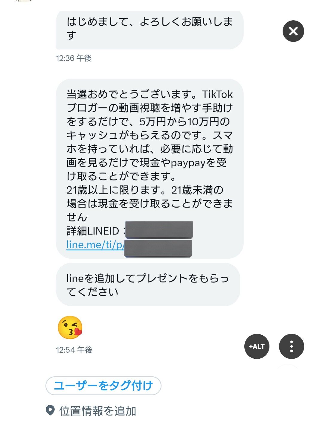 XなのにいきなりLINEに誘導してくる相手は危ない相手である可能性は高いです。