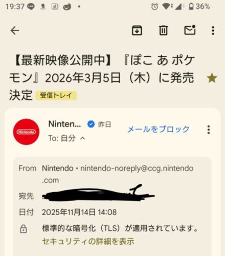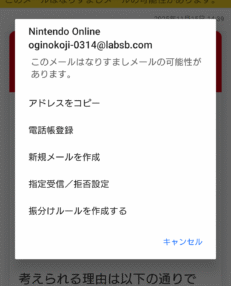 ついこの間、任天堂を語った迷惑メールが来ました。
